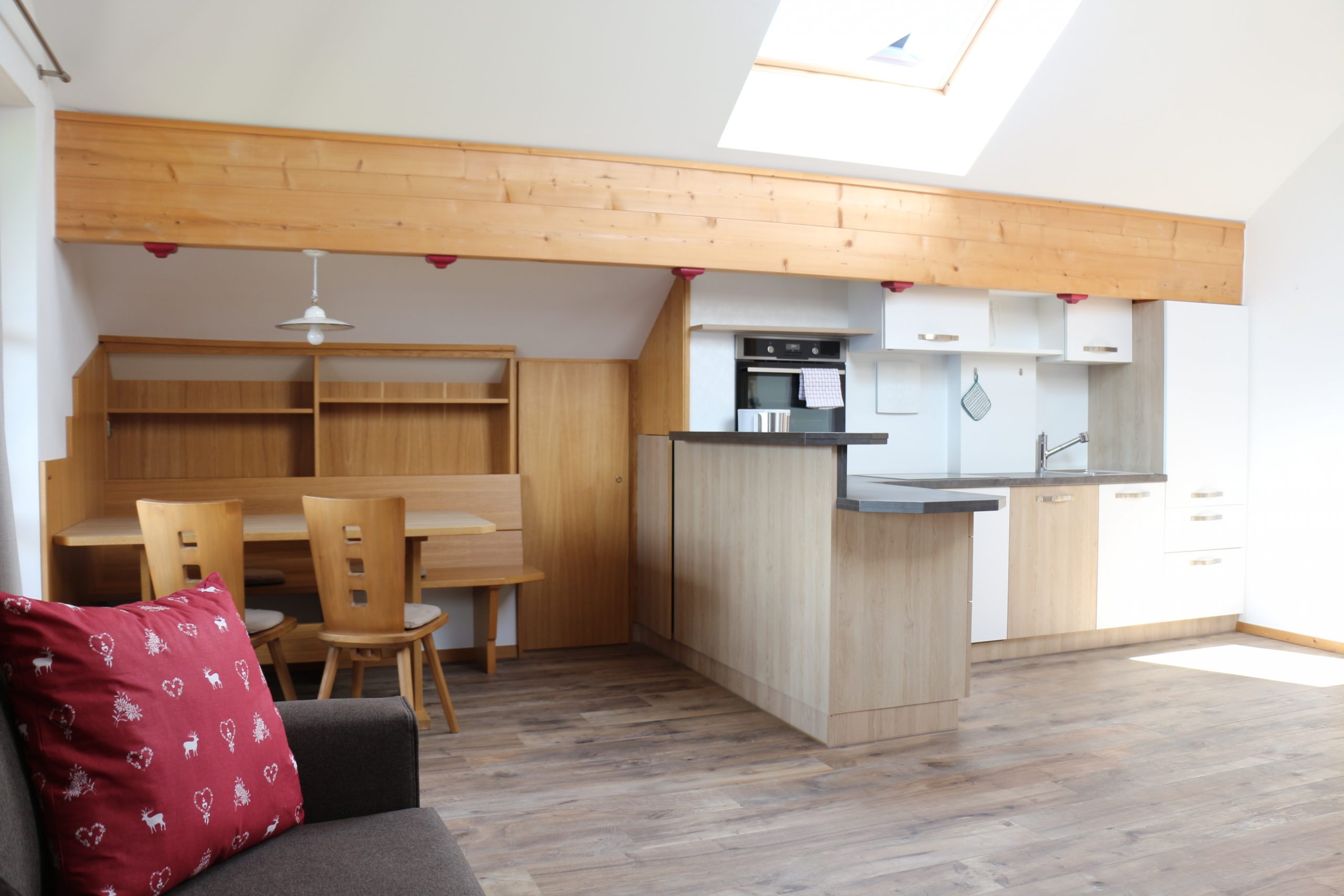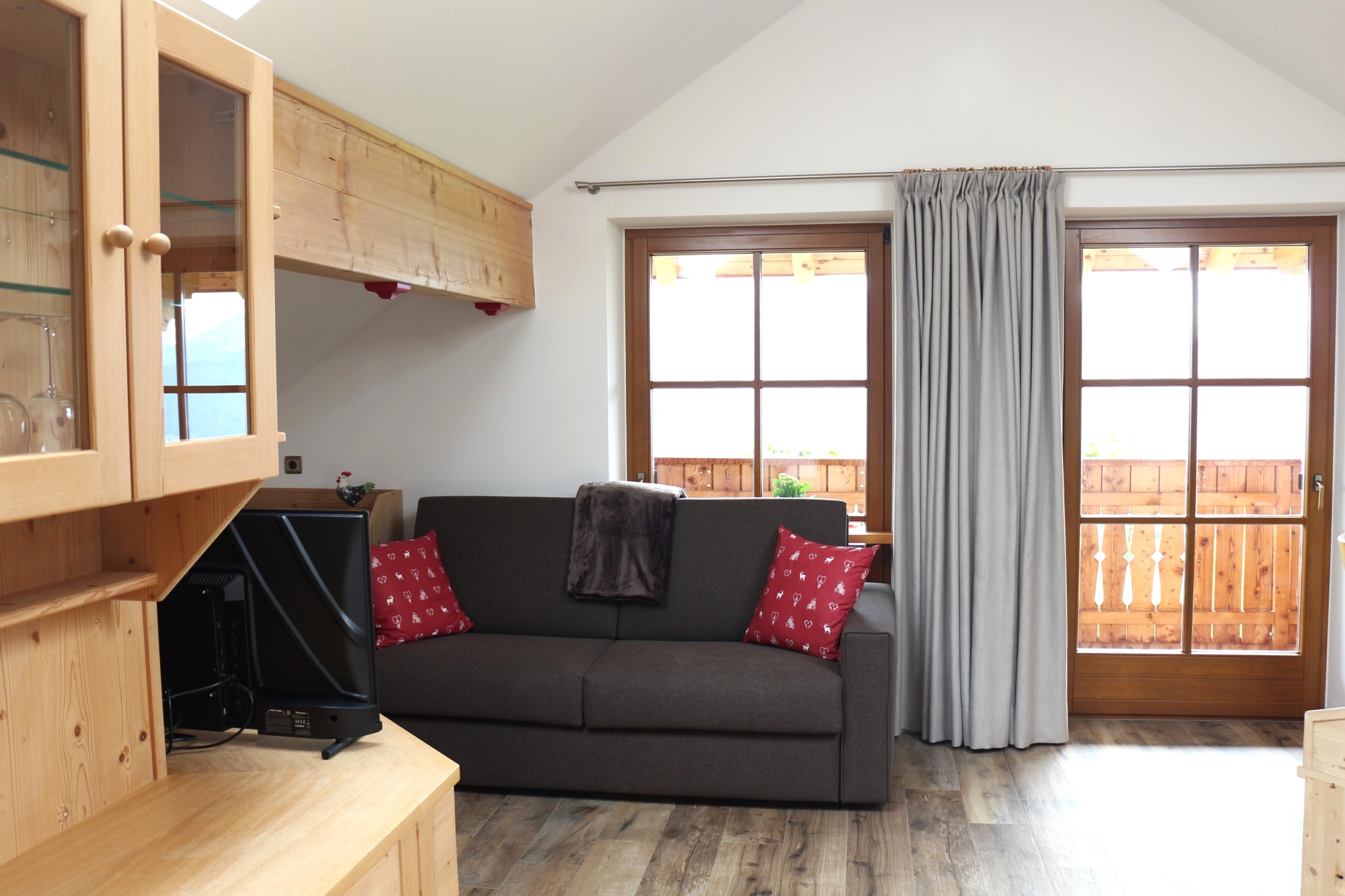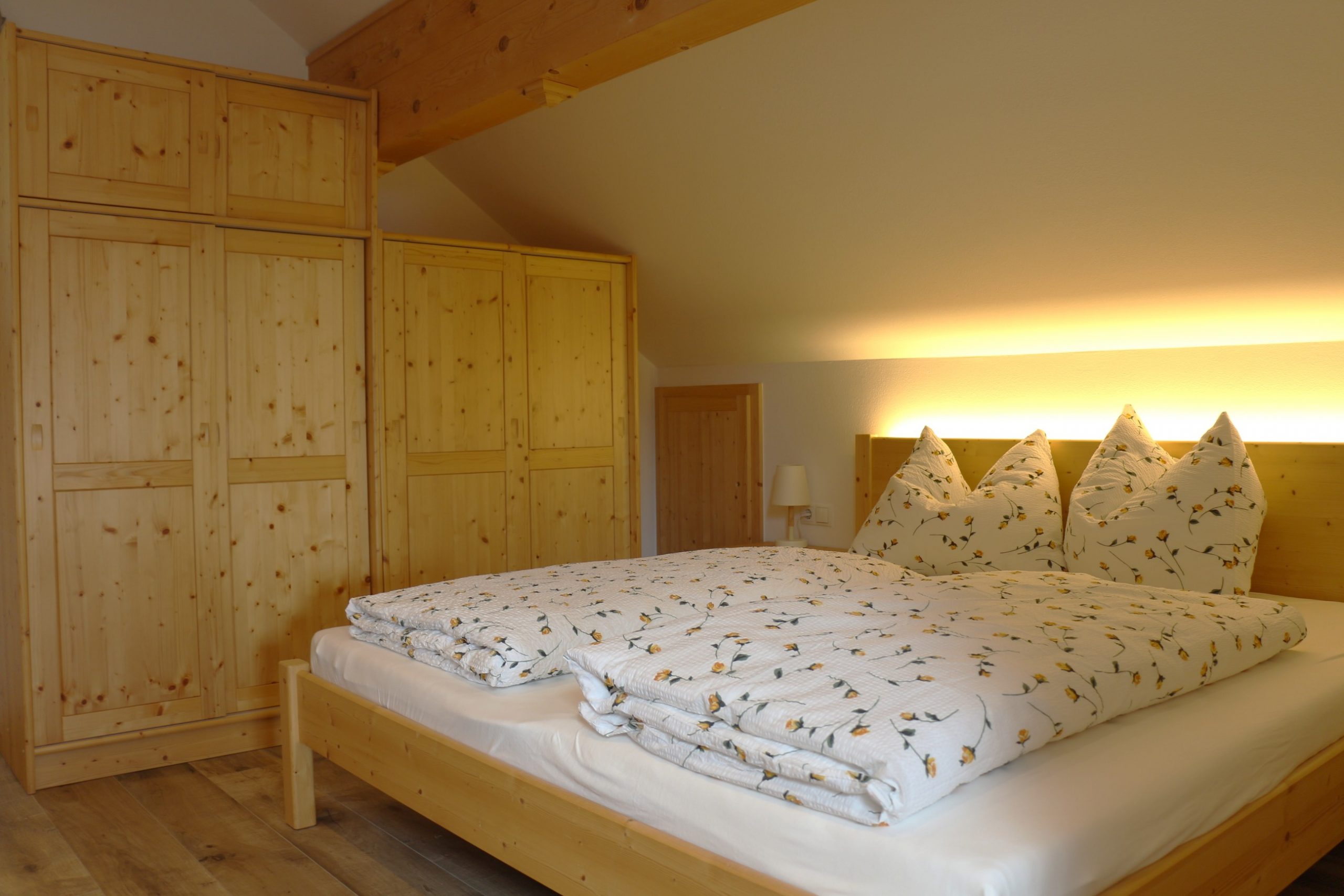 Im Dachgeschoss gelegen, bietet diese Wohnung einen unvergleichlichen Panoramablick über Südtirols Bergwelt. Die Verwendung von Massivholz für die Möbel sorgt für eine natürliche und wohlige Atmosphäre. Hier könnt ihr den Tag bei frischer Bergluft und beeindruckendem Ausblick ausklingen lassen. Ein perfekter Rückzugsort für alle, die Ruhe, Komfort und die Schönheit der Natur vereinen möchten.