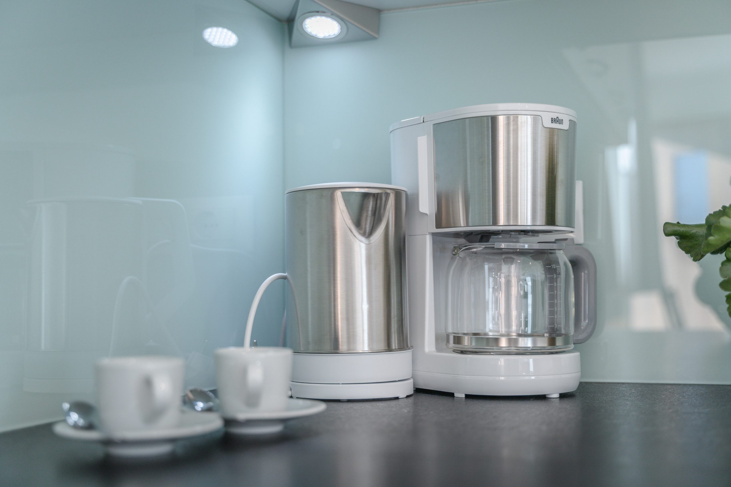 • Großzügige Wohnküche mit Spülmaschine, Kochfeld, Backrohr, Kühlschrank mit Gefrierfach, Kaffeemaschine & Wasserkocher